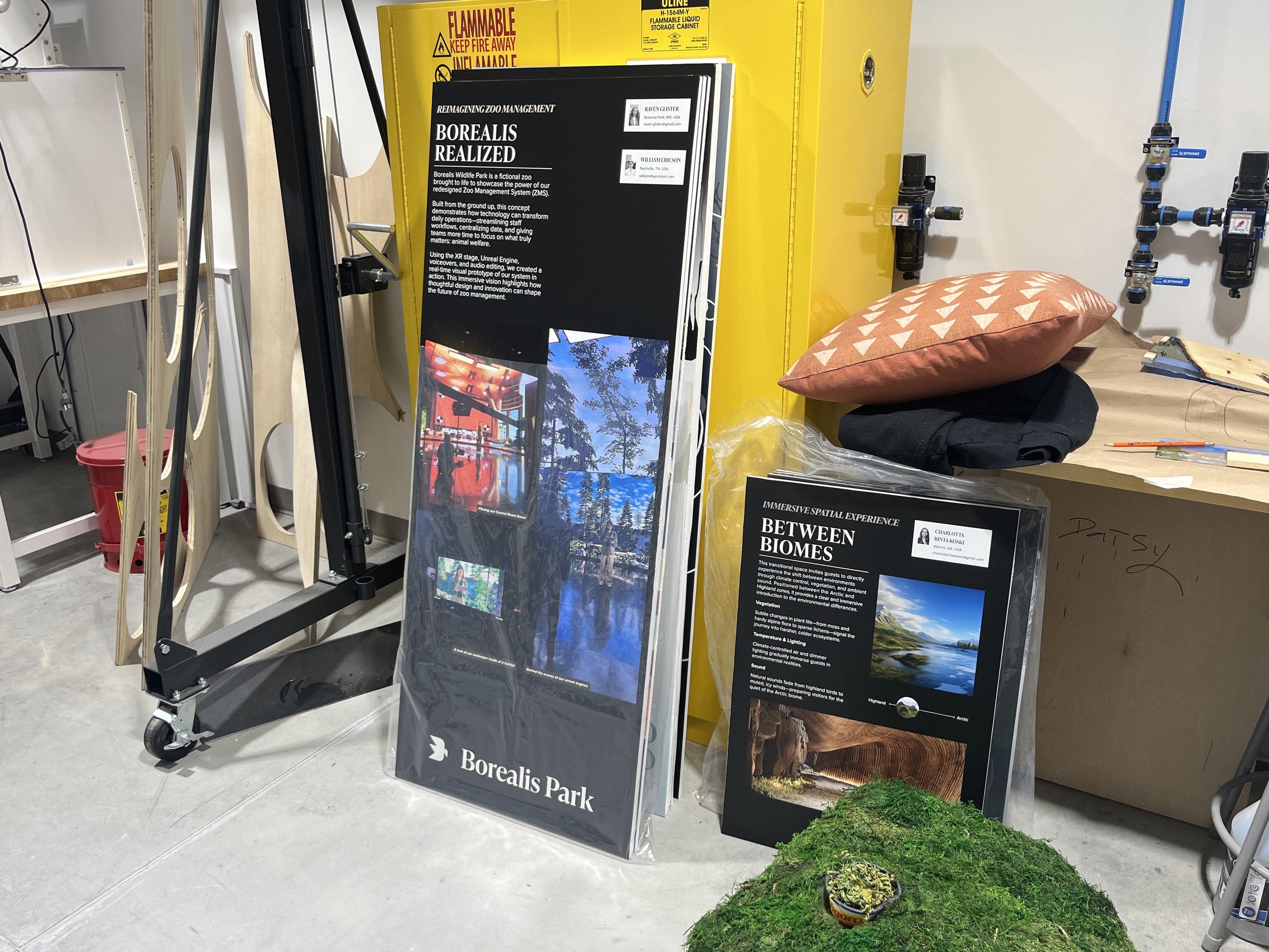 For the show, we also needed explanatory posters for all of our 9 stations. The posters needed to be modular so other designers could create their own versions, while also having room for the designers' contact info cards.