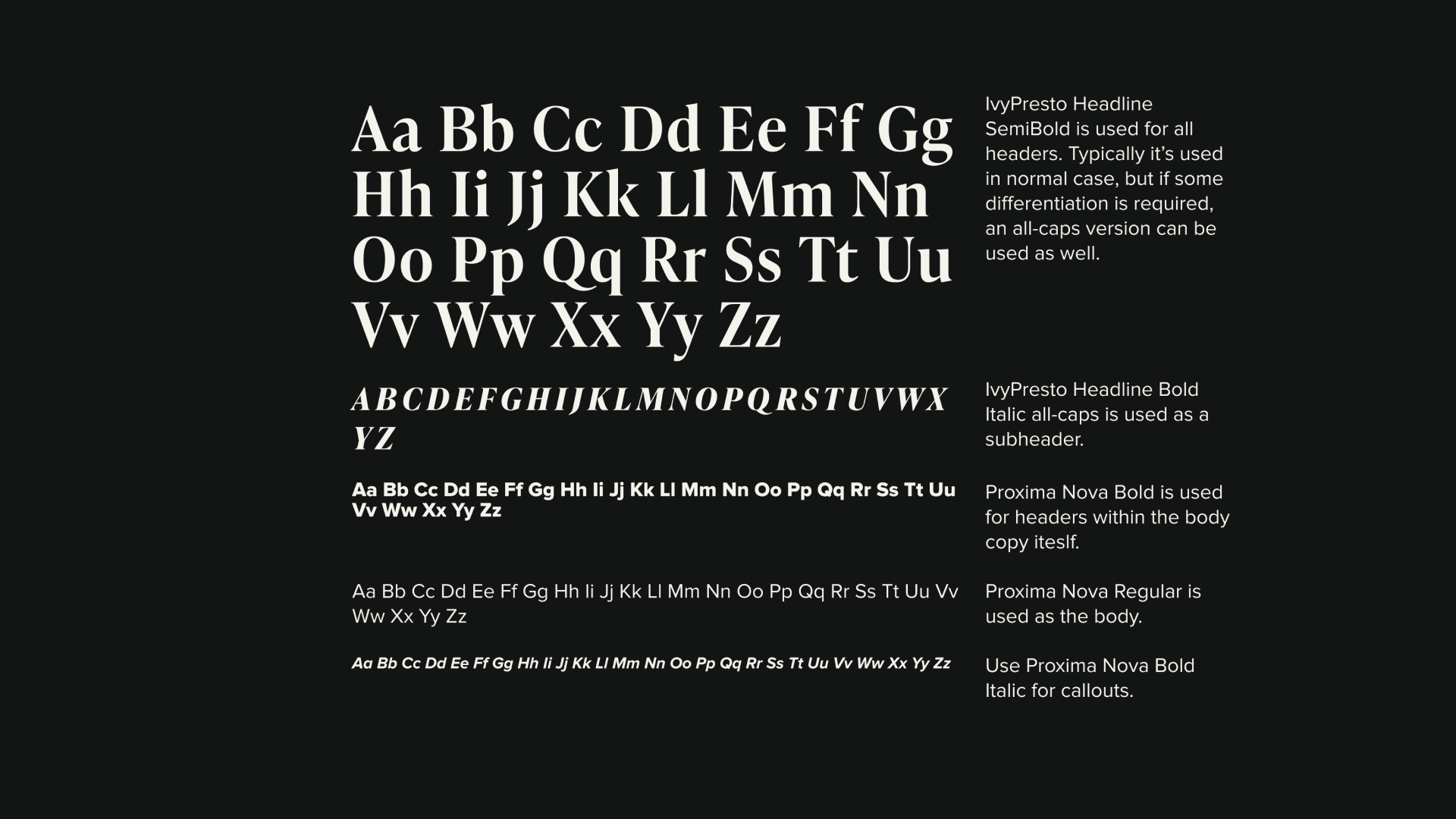 I established guidelines for type, margins, gutters, layouts, etc that the other designers could follow so our branding could be coherent.