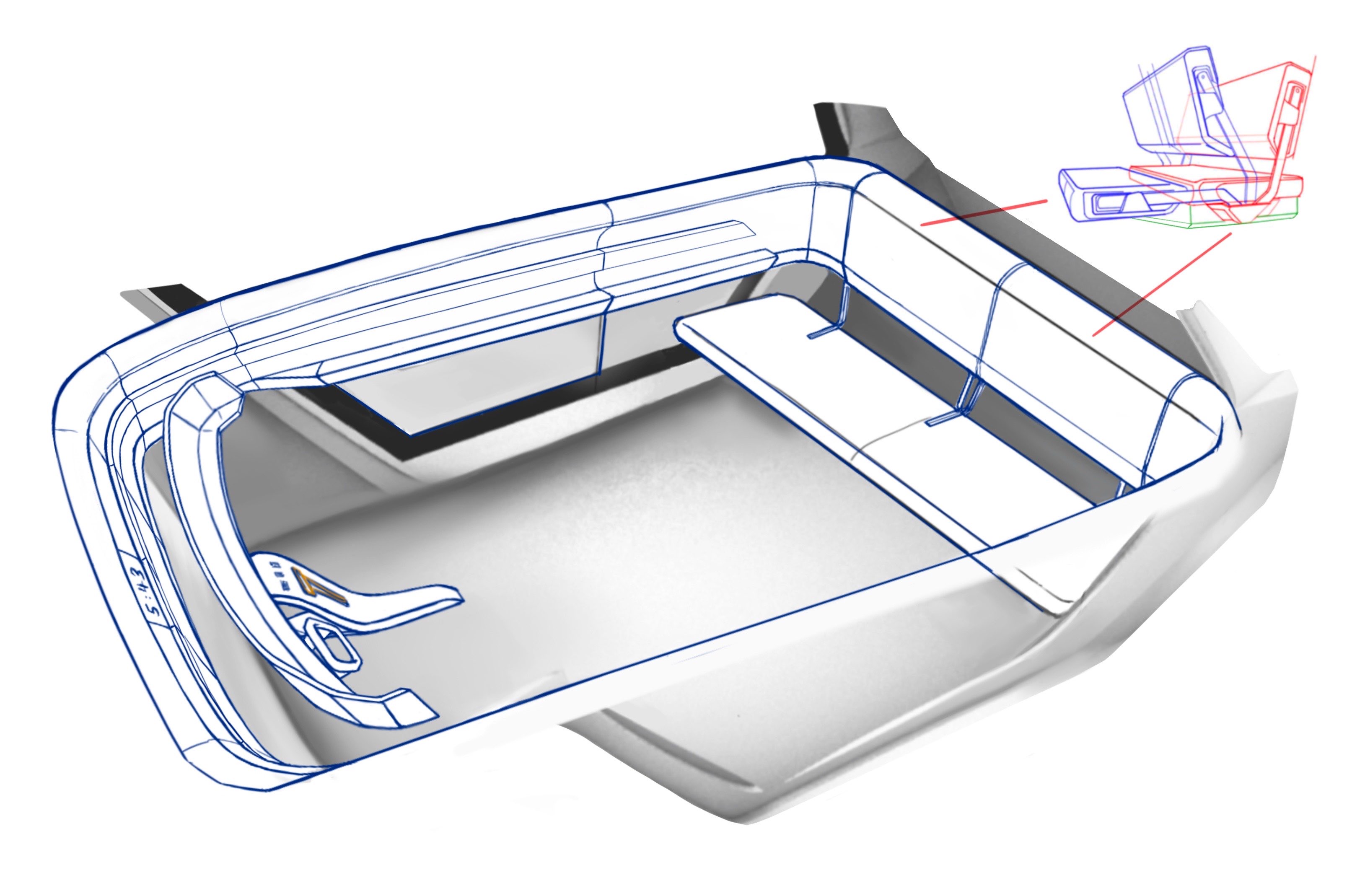 Helped design the dashboard and interior including the side of the car and the folding seats.
